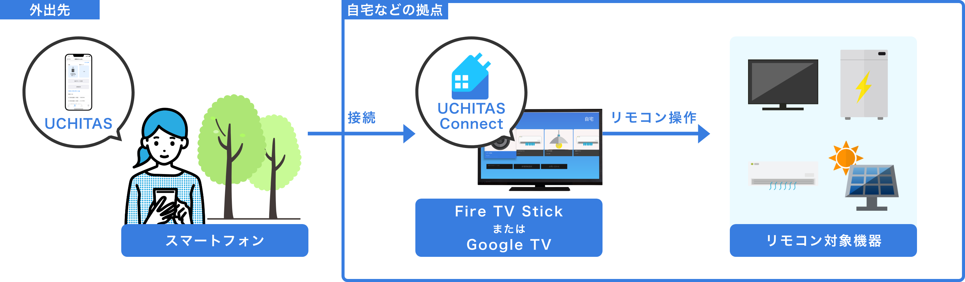 UCHITASは外出先から自宅の家電をリモコン操作する「宅外リモコン」を提供しています。